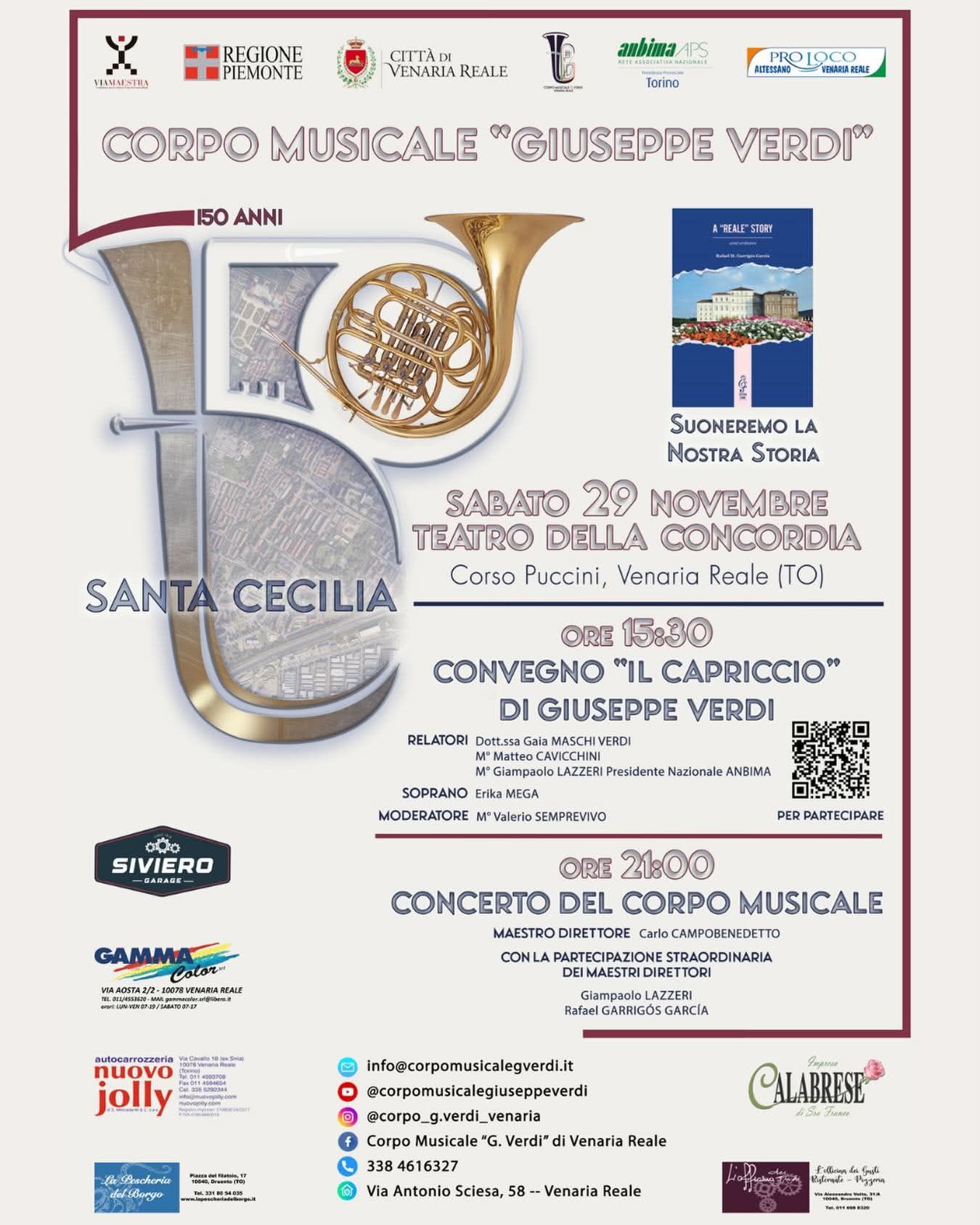 Doppio appuntamento per i festeggiamenti di Santa Cecilia del Corpo Musicale Giuseppe Verdi Città di Venaria Reale